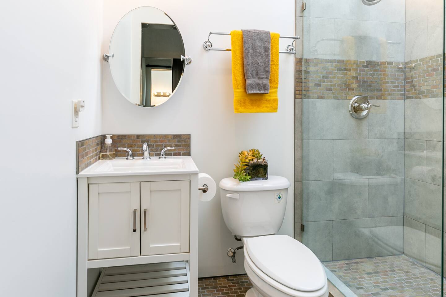 The studio space of the building is accessed by the gate next to the front door that leads back to the courtyard in the center of the building. The studio has a full bathroom, a wet bar, and ample storage space that are all private! The courtyard may be shared with guests staying in the front portion of the building. We will provide you with a code to gain access through the gate and into the space.